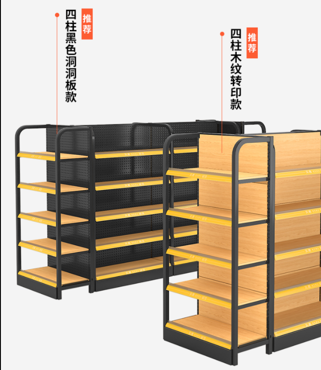 【特點(diǎn)】精選優(yōu)質(zhì)冷軋鋼材打造鐵框架烤漆,鐵框架鋼管厚度加厚升級。加粗加固木制背板設(shè)計(jì),再搭配簡約時(shí)尚的木質(zhì)側(cè)板,,完美匹配各種超市便利店裝修風(fēng)格,實(shí)用性與美觀性并存,有效增強(qiáng)商品展示的效果。貨架頂端可增配廣告牌分類牌,便于對所陳列的商品進(jìn)行分類指示,對顧客購物形成有效引導(dǎo),提升顧客購物體驗(yàn)。